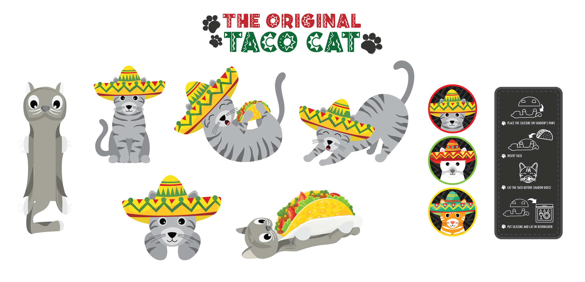 Various illustrations for the packaging design of Munchum The Original Taco Cat.